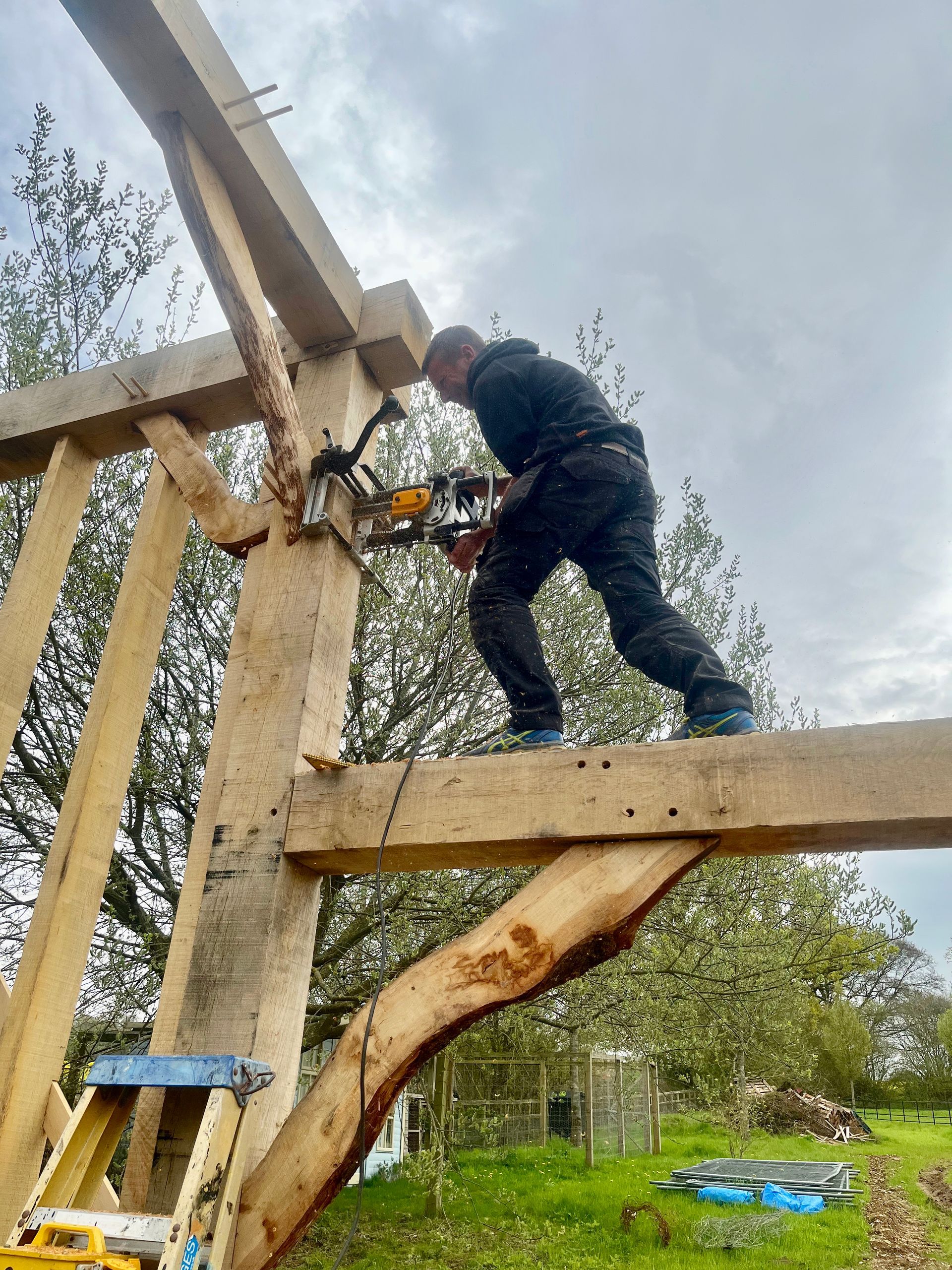 It was decided that the bracing would be taken from naturally curved oak boughs rather than cutfrom straight cut timbers and aged.